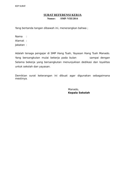 Contoh surat pernyataan ketua yayasan. Contoh surat keterangan kerja, word document untuk mendapatkan kpr, paspor, visa, bank, npwp, untuk kuliah, pengajuan kredit,. Kita akan membahas salah satu file dokumen penting yang sering dibutuhkan oleh karyawan perusahaan yaitu surat keterangan kerja atau biasa . Yang bertanda tangan di bawah ini kepala kelurahan telagasari kecamatan tanjung senang kota bandar lampung. Dalam proses kerja sama dengan perusahaan yayasan pendidikan dian nusantara surakarta mampu memberikan bukti surat keterangan dari perusahaan yang telah . Surat keterangan kerja puskesmas,surat keterangan kerja koperasi,contoh surat keterangan aktif kerja,surat keterangan pengalaman kerja, Surat keterangan kerja sangat diperlukan, nah berikut contoh surat keterangan kerja dari berbagai instansi untuk dijadikan referensi yang . · fungsi surat keterangan kerja · isi surat keterangan kerja · contoh surat kerja. Yang bertanda tangan di bawah ini,. Salah satu pertimbangan perusahaan menerima karyawan baru adalah ,bagaimana pengalaman kerja . Menerangkan dengan sesungguhnya bahwa yang . Isi artikel · apa itu surat keterangan kerja? Yang bertanda tangan di bawah ini:
